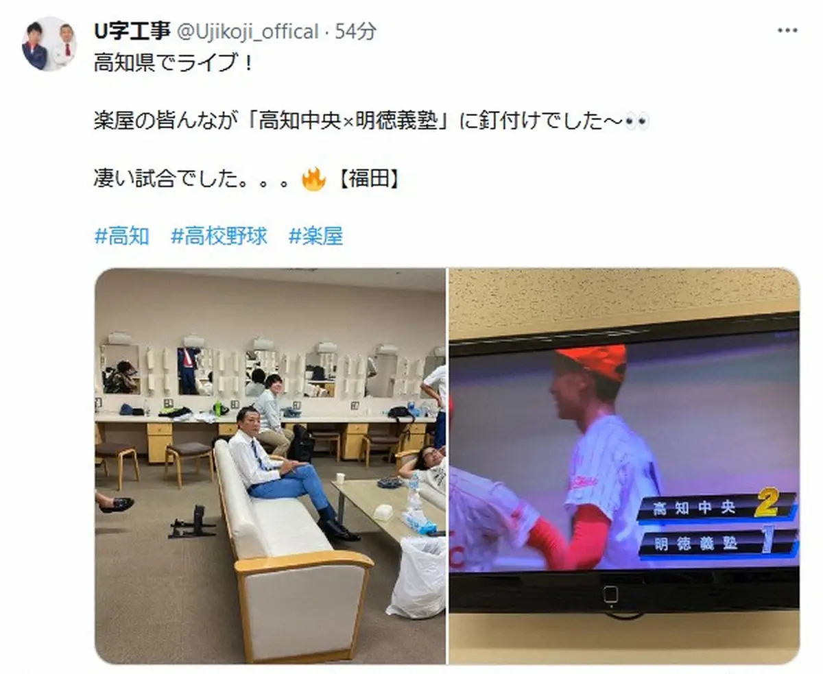 U字工事 Photo by スポニチ お笑い芸人も身を乗り出した高校野球の大熱戦 「栃木大会もいい試合です… ギャラリーで見る この記事のフォト 2023年07月23日の画像一覧 もっと見る 2023年07月23日の画像をもっと見る
