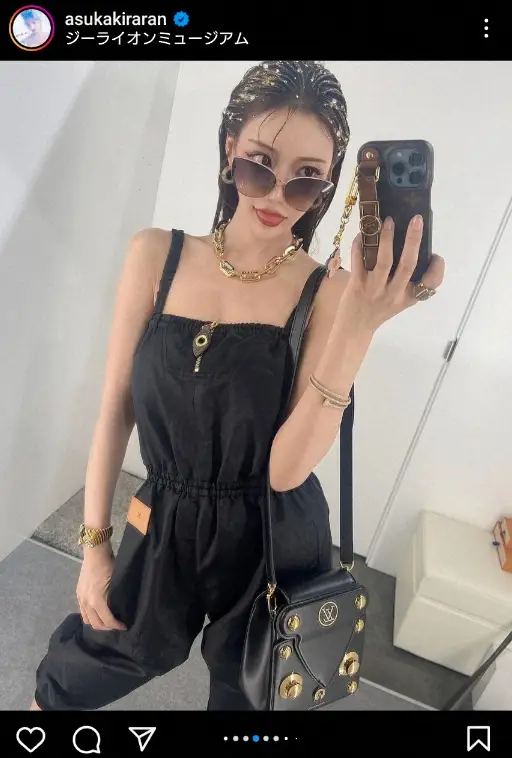「@louisvuitton2023FWコレクション 参加してきました!」と報告。サングラス、黒のジャンプスーツにバッグ姿の写真をアップし「今回はジャンプスーツスタイルにまるでヘアまでVUITTONのジュエリーかのようなギラッギラで会場でもたくさん褒められて嬉しかったです」とつづった。