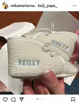 7日の七夕の日に帝王切開にて第3子を出産した麗果さん。「Our family recently Happy two weeks」(我が家は最近、幸せな2週間を過ごしている)」と近況を報告。「なーんと Hermesが特別にサプライズでご用意していただいたとってもスペシャルなKeillyのファーストシューズに名入れ特別にしていただいて 素敵過ぎる ケイリーの部屋に飾ります thank you so much to the Hermes team.」と高級ブランドからのサプライズの贈り物を明かした。