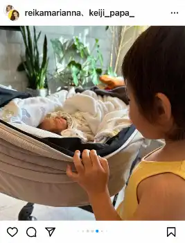 この投稿に、フォロワーからは「ほのぼの」「HERMESまゆとおそろい」「かわいすぎ」「かわいいの大渋滞ですね」「お兄ちゃんに似てますね」「啓司パパと寝てるケイリー君笑ってる」「全部尊い」「お二人に似てますね」「めっちゃ幸せ家族ですね」「ホントにステキなご家族ですね」「ケイリーくんとは愛称じゃなかったんですね」「パパ譲りのお顔」などのコメントが寄せられている。
