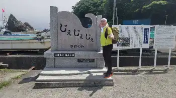 素潜り実演をしてくれた海女さんの一人、きたむらさきうに子さんにヨウさんとツーショット写真をお願いした。「彼は韓国から来た“あまちゃん”ファンで…」と説明したら、「うれしい」と快く応じてくれた。「私もチャン・グンソクが大好きなの」との告白もファン同士のエール交換だ。