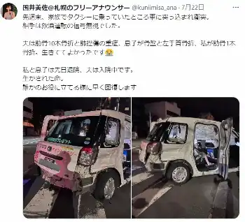 タクシー乗車中の交通事故で夫が重症 元HTBアナ、事故は「悪質な飲酒運転」だった 自身と息子は骨折