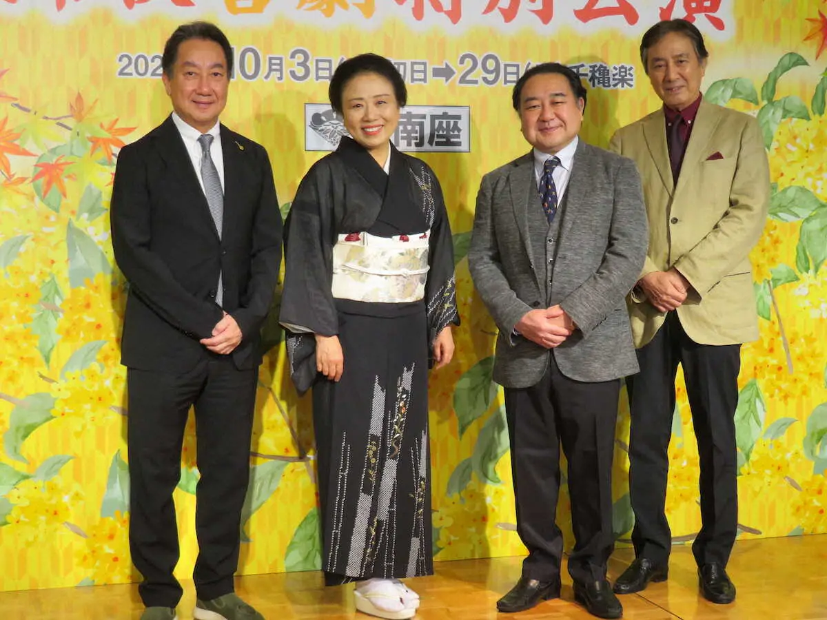 藤山との共演が27年ぶりという鴈治郎は「やっと、また一緒に舞台に立てるのがうれしい」。今回、女形として喜劇の舞台に立つ扇雀は「女優さんがたくさんいる中で女形をするのは記憶にない。でも今、ここに来てすごくやる気になってきました。これが定期公演になるぐらい頑張りたい」と力を込めた。