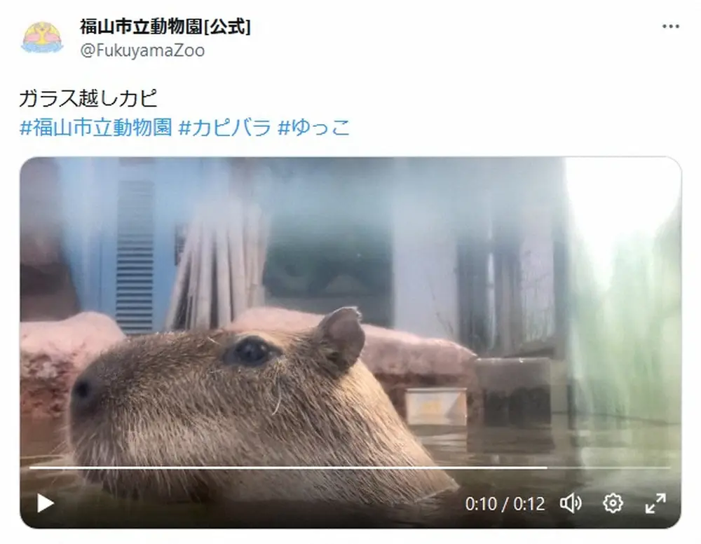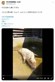 広島県の福山市立動物園では、「ガラス越しカピ」と、カピバラの"ゆっこ"が水の中を動き回る動画を投稿。千葉県の市川市動植物園は、「今日も朝から暑いですね イチョウ君は朝一からプールに入って気持ち良さそうです」と、"イチョウ君"が水中で転がって涼む動画と、「♯暑い」「♯一緒に入りたい」と担当者の心の声もつぶやかれた。