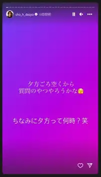 この日正午頃、「夕方ころ空くから質問のやつやろうかな」と投稿するも、「ちなみに夕方って何時?笑」と疑問を投げかける形に。これに反応したファンによって、ツイッターで「紫耀くんの夕方」というワードがトレンド入りした。