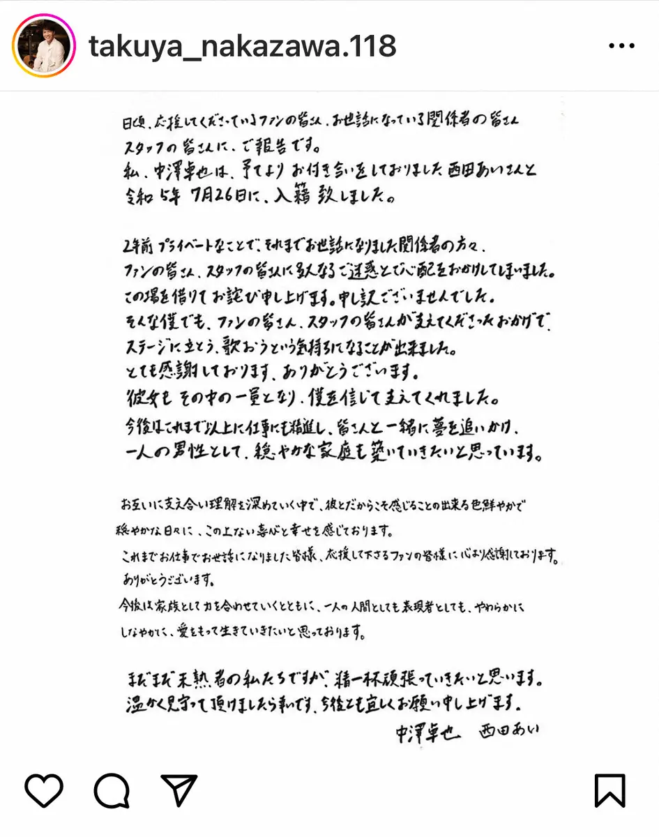 中澤卓也(左)と西田あい Photo by スポニチ 演歌歌手・中澤卓也 西田あいとの結婚発表 昨年元交際相手とのトラブル… ギャラリーで見る この記事のフォト 2023年07月27日の画像一覧 もっと見る 2023年07月27日の画像をもっと見る