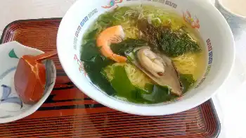 岩手県普代村にある国民宿舎くろさき荘から北山崎展望所まで「みちのく潮風トレイル」を歩いた。想像以上の難路は、アップダウンの繰り返しの約10キロ。大断崖の絶景を放心状態で眺め、レストランで食べたのは「磯ラーメン」。この旅の道中で同名のラーメンを食べるのは3回目となる。魚介ダシの塩ラーメンで、具はホタテやエビ、カニ、メカブなど。さっぱりしていておいしい。