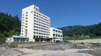 【笠原然朗の舌先三寸】宿泊は岩手県田野畑村のホテル羅賀荘。羅賀漁港前に建つ10階建の建物で、青空に白色が映える。東日本大震災による津波は3階部分まで達したという。