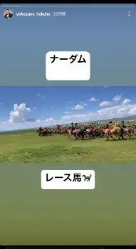 またストーリーでは、ナーダム恒例の競馬が行われ、青空のもと、広大な草原を馬が駆け抜ける風景を披露。親方が満喫している様子がうかがえた。