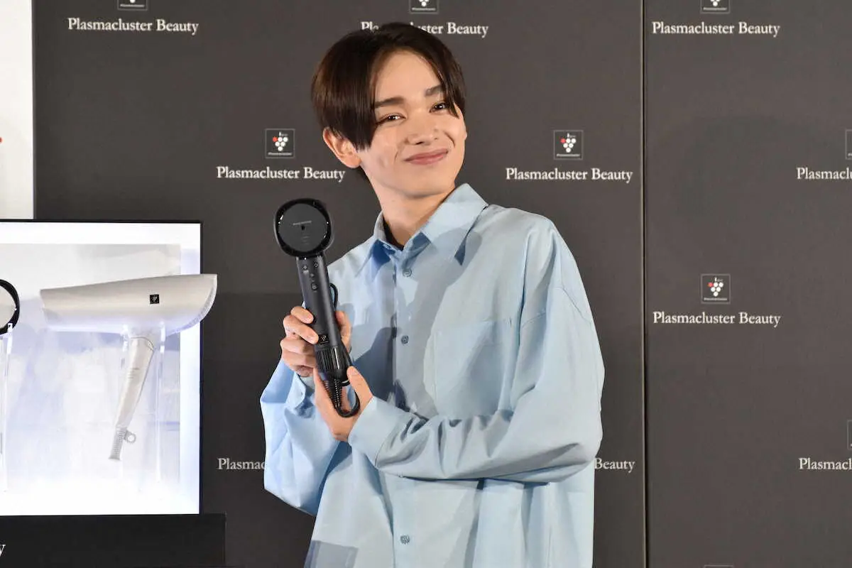 俳優の宮世琉弥が31日、都内でシャープのプラズマクラスタードライヤー新製品発表会に出席した。