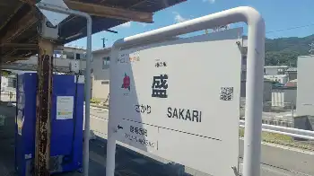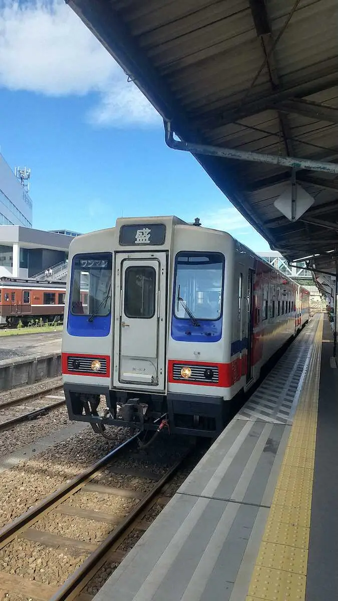 盛駅のホームへ列車が滑り込んだ。ここを定年旅約880キロの「結びの地」とする。
