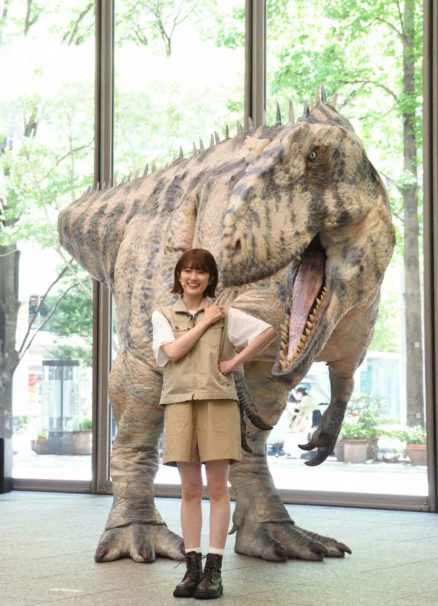 この日はティラノサウルスのライバルと称される超大型肉食恐竜「ギガノトサウルス」がお披露目された。「怖さもありつつ格好いい!思わず“格好いい”と言っちゃいました」と笑う。元々「未知の生物が好き」だが、出演を機に恐竜図鑑を購入。プライベートで訪れたショッピングモールでは、恐竜のおもちゃを持った男の子に話しかけ“恐竜トーク”で盛り上がったことを振り返る。「この夏いっぱい勉強して、もっと子供たちに話しかけたいです」と声を弾ませた。
