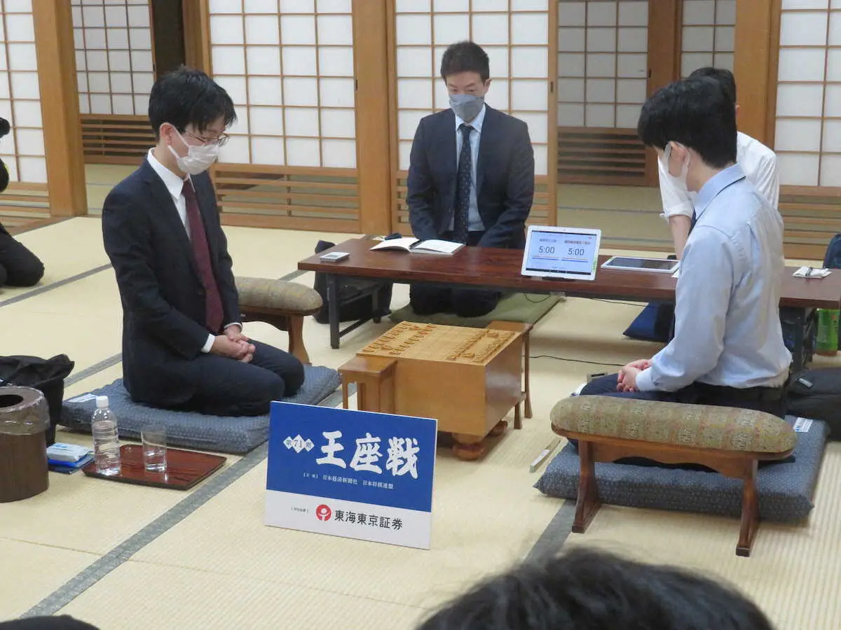 藤井聡太王将(21)=名人、竜王、王位、叡王、棋王、棋聖含む7冠=が4日、大阪・関西将棋会館で臨んだ豊島将之九段(33)との第71期王座戦挑戦者決定戦は午後6時、夕食休憩に入った。指し手は73手に達し、先手藤井が豊島陣へ放った「焦点の歩」への対応を豊島が熟考。形勢互角のまま、残り時間は共に50分ほどになった。