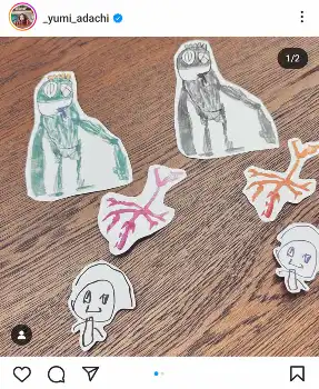 安達は「息子の落書きをスウェットにしてみた。エキセントリックボーイ。大きいサイズも作ったのでメンズの方も着れるよ」とつづり、自身が手がけるブランド「Torico」で「落書き」をちりばめたビッグシルエットのスウェットを着た姿などを披露した。