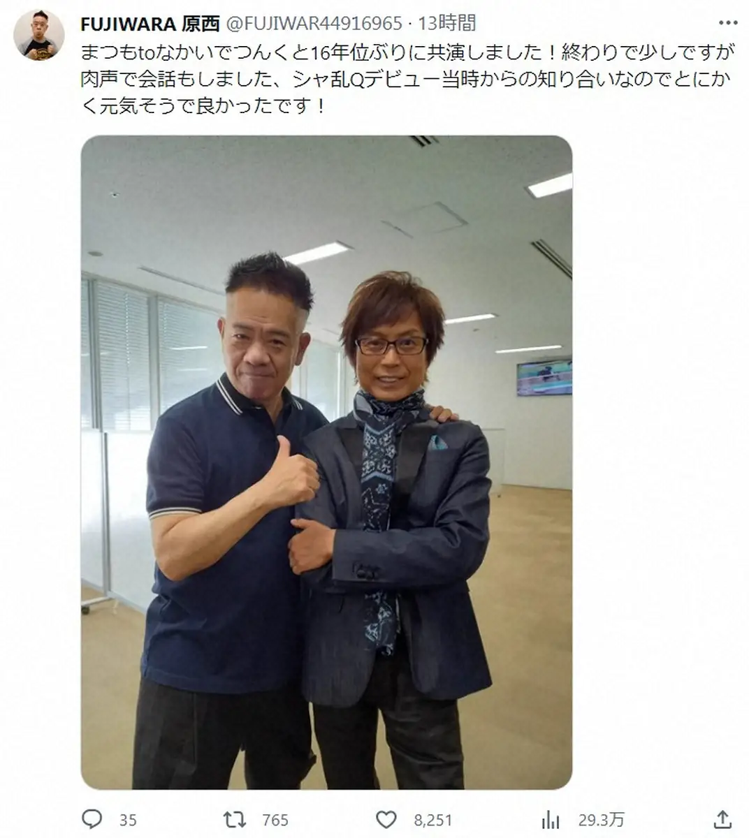 FUJIWARA・原西 約16年ぶりにつんく♂と共演「肉声で会話もしました」 2ショットに感動の声も