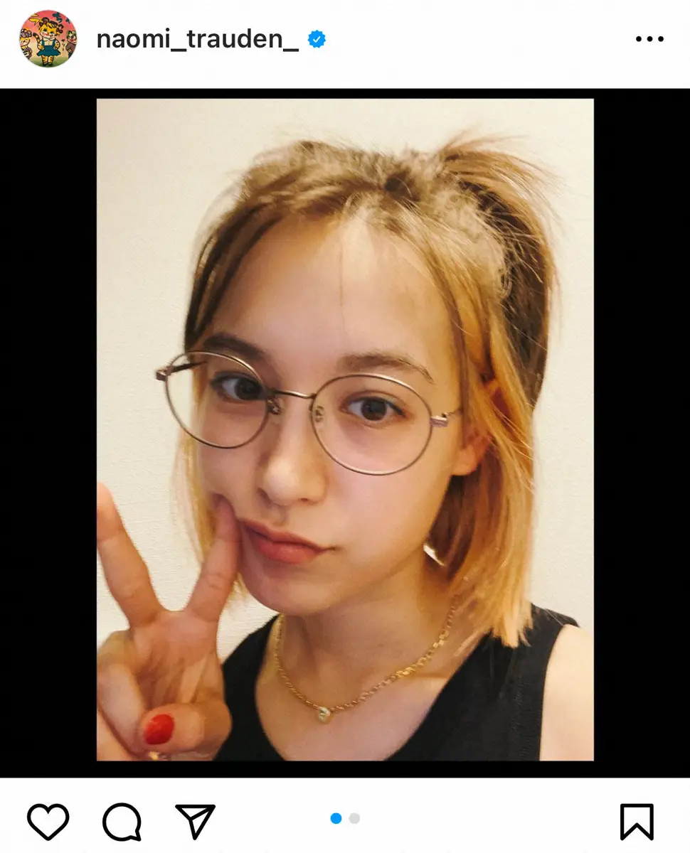 トラウデンは「おうちスタイル」として髪を後ろにしばり、メガネ姿でラフな格好のアップ写真を投稿した。