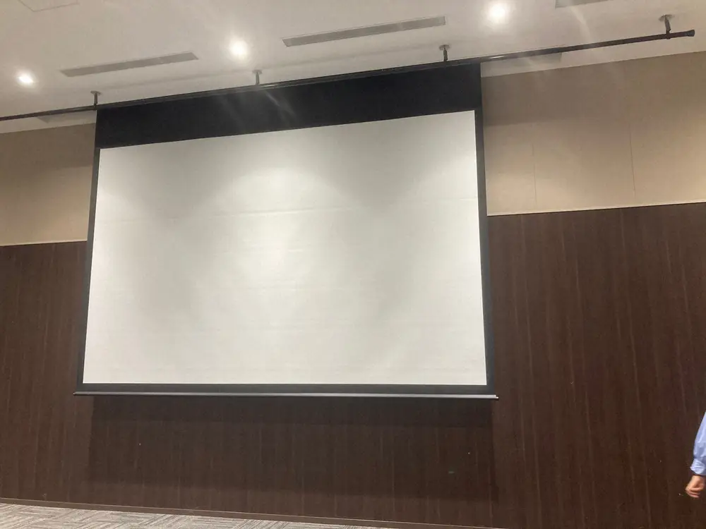 中でも驚いたのは、舞台監督さんとの会場下見の時です。会場に入った瞬間、「はい、舞台の長さはこれぐらい、スクリーンはこれで、このサイズの映像にしましょう。これなら何人くらい入れますね。」とすぐに会見のイメージを把握。そして、なんだか見たことのないメジャーを取り出し、天井から床までの高さ、舞台までの長さを測りはじめました。その間なんと1分弱!「はーい!じゃあここはこれで終わりです!」とあっという間の下見でした。