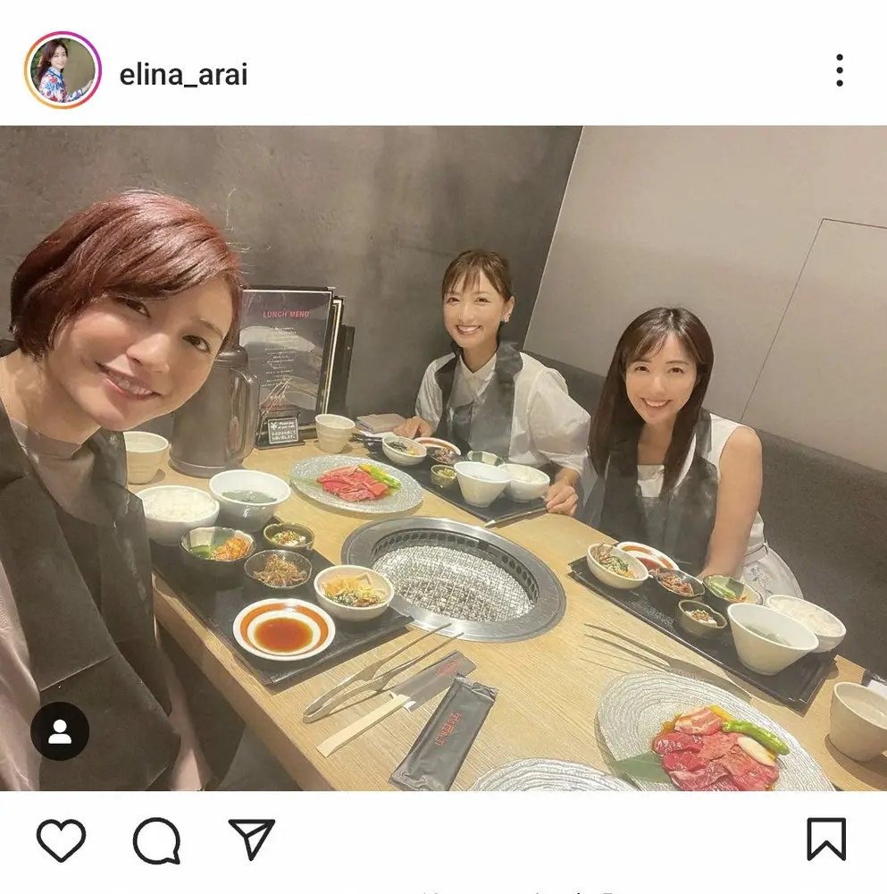 第1子妊娠中で産休中のフリーアナウンサー・新井恵理那(33)が10日、自身のインスタグラムを更新。同じ事務所のフリーアナウンサー・望月理恵(51)、松本あゆ美(36)とのランチショットを披露した。