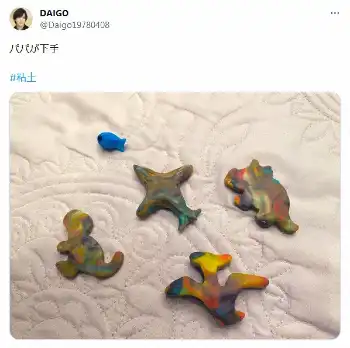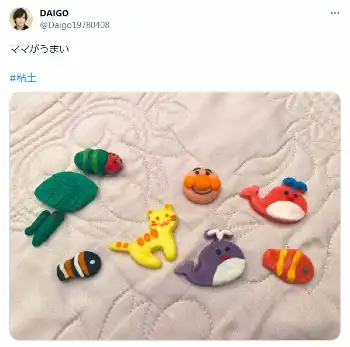 この投稿に、北川からは「本気出せばもっと上手く作れる」と牽制が入り、「絵本の補修テープは、一つなくなったと思って買ったら古いのすぐ出てきた。ドンマイ!」と返信。またファンからは、「お市様、ホントはお粘土おねえさんだったんですね!」「可愛い~パパも頑張って~」「ママの本気のも見たい!」「何気の後ろのママのアクスタが存在感w」などのコメントが集まった。