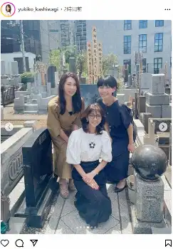 「またこの日がやってきました。38年といえど、何回目であっても、辛い一日には変わりませんがたくさんの方に支えていただき今があることに感謝の日でもあります」と記し、2人の娘とともに坂本さんの墓前での画像をアップ。