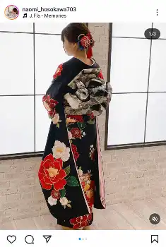 細川は「娘が選んだ振袖と 私が二十歳の時に着た振袖の2着 七五三の時の撮影の思い出と重なって思わずクスッとなってしまいました」とつづり、細川がかつて着たグリーンの着物と黒地の着物姿の長女の写真などを投稿。