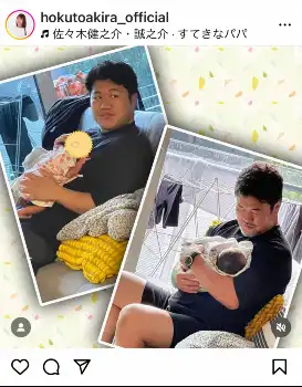 この日は「すてきなパパ」とつづり、建之介さんと健介が、それぞれ赤ちゃんを抱っこする写真をアップ。「すてきなパパ」は、健之介さんと、弟の誠之介さんがまだともに小学生だった頃、父・健介を思って歌った配信シングルのタイトル。「この歌を唄ったとき 自分がパパになる日が来るなんて思わなかっただろうな~」とつづった。