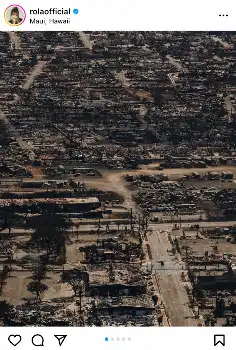 ローラは「アメリカハワイ州マウイ島で起きた大きな森林火災。現時点で約96人の死者と1300人以上の行方不明者がでているとききました」と切り出し、今回の火災により被害にあった現地の写真を添えた。