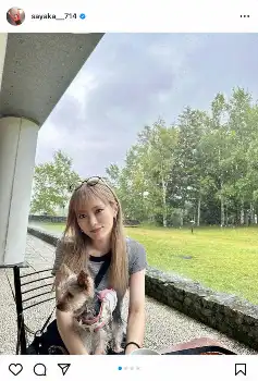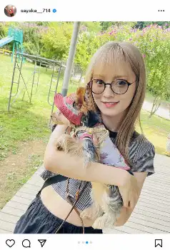 山本はサングラスをかけて、お腹がチラリと見えるファッションで愛犬を抱いている写真などを自身のインスタグラムに投稿。