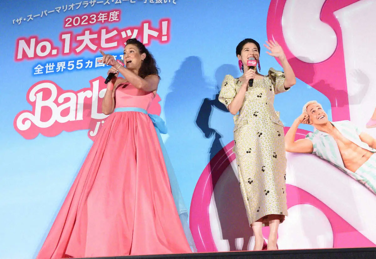 フリーアナウンサーの神田愛花(43)とタレントのLiLiCo(52)が17日、都内で行われた映画「バービー」のピンクコーデ上映会に登場した。