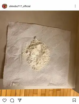 大竹が掲載したのは、キッチンペーパーの上に白い粉を載せた写真。朝、台所を片付けて外出しようとしたところ、蟻を発見したという。「どうしよう。そうだ前に息子が私の留守中に試してくれていた方法があった」と、長男の二千翔(にちか)さんに教えてもらったという方法を試した。