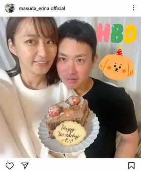 元TBSでフリーアナウンサーの枡田絵理奈(37)が18日までに自身のインスタグラムを更新。17日に32歳の誕生日を迎えた夫の広島・堂林翔太内野手を祝福する画像を投稿した。