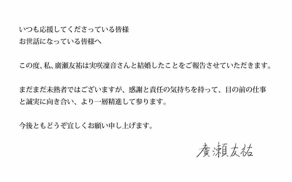 結婚を発表した廣瀬友祐(左)と実咲凜音 Photo by 提供写真 俳優の廣瀬友祐と元宝塚宙組トップ娘役の実咲凜音が結婚「感謝と責任の気… ギャラリーで見る この記事のフォト 2023年08月20日の画像一覧 もっと見る 2023年08月20日の画像をもっと見る