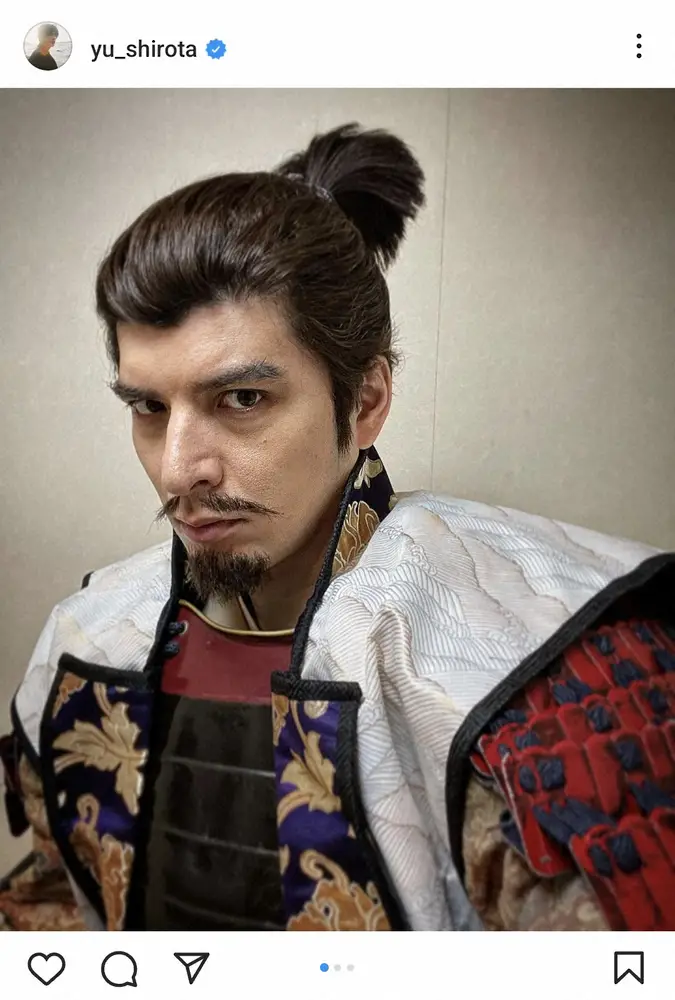 「『どうする家康』かつて鬼武蔵と恐れられた、森長可役で、14年ぶりに大河ドラマに出演させていただいています」と書き出すと、衣装姿のショットをアップ。