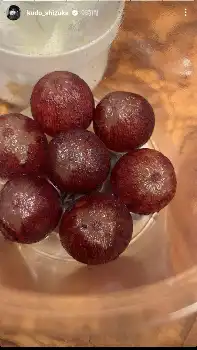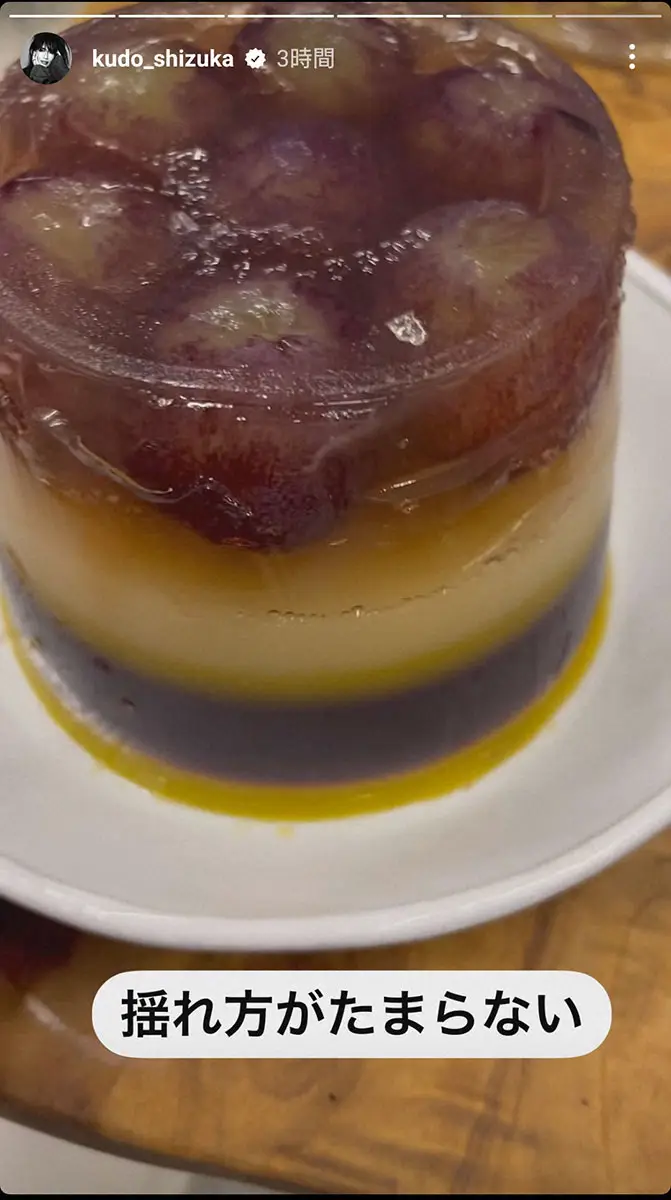 工藤は「さくらんぼやハウスみかんなどが入っていた容器を再利用。高さが出て可愛いです!」とつづり、材料は、ぶどう、みかん、ブルーベリー、りんご、ざくろとし「ぶどうの皮はゆっくり甘皮を残すように剥きます」とポイントを説明。ストーリーズでもプルプル揺れる様子を披露し「揺れ方がたまらない」とした。