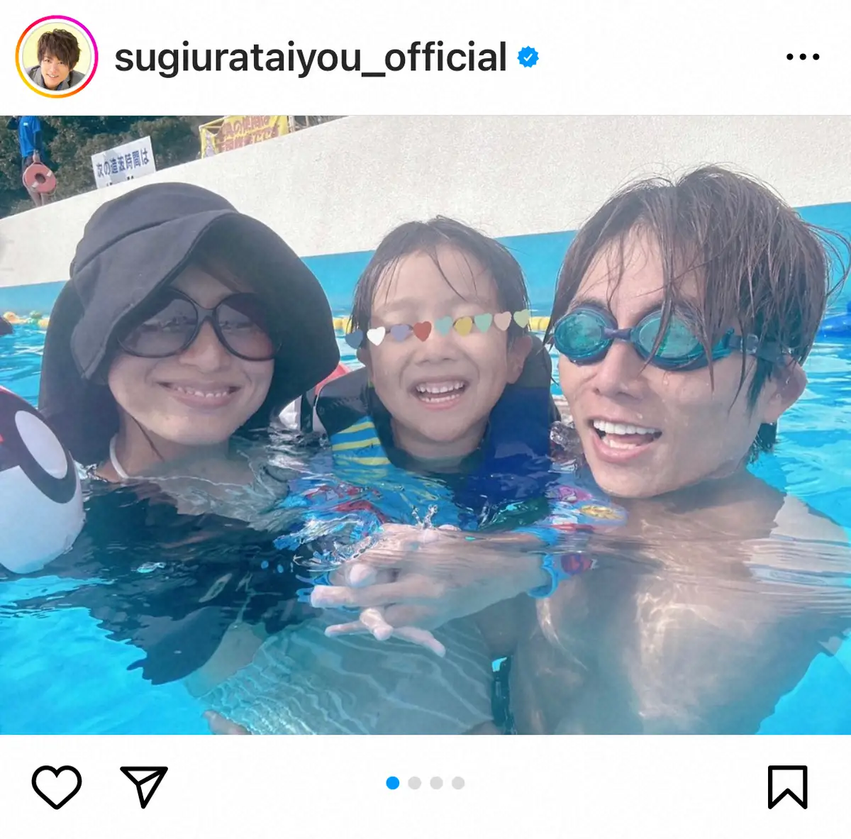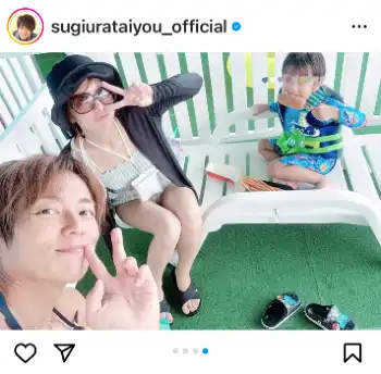 俳優の杉浦太陽(42)が23日までに、自身のインスタグラムを更新。妻でタレントの辻希美(36)ら家族とプールを楽しむ姿を披露した。