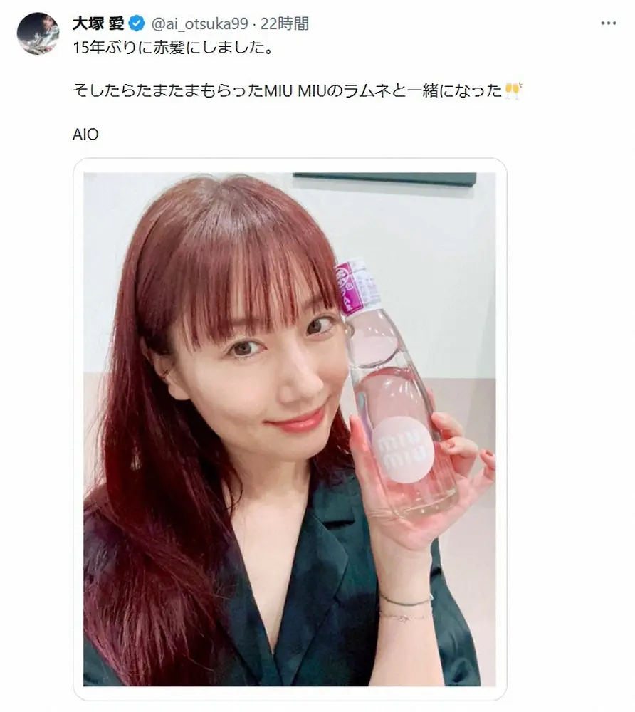 歌手の大塚愛(40)が24日までに自身のX(旧ツイッター)を更新。赤く染めた新ヘアスタイルを披露した。