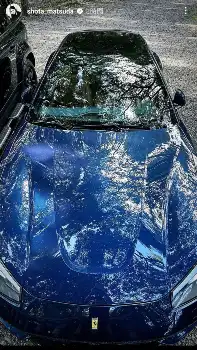 また、ストーリーズでは愛車のダークブルーのフェラーリ「GTC4ルッソ」のボンネットに木漏れ日が落ちる美しいボンネットリフレクションの写真などを投稿した。