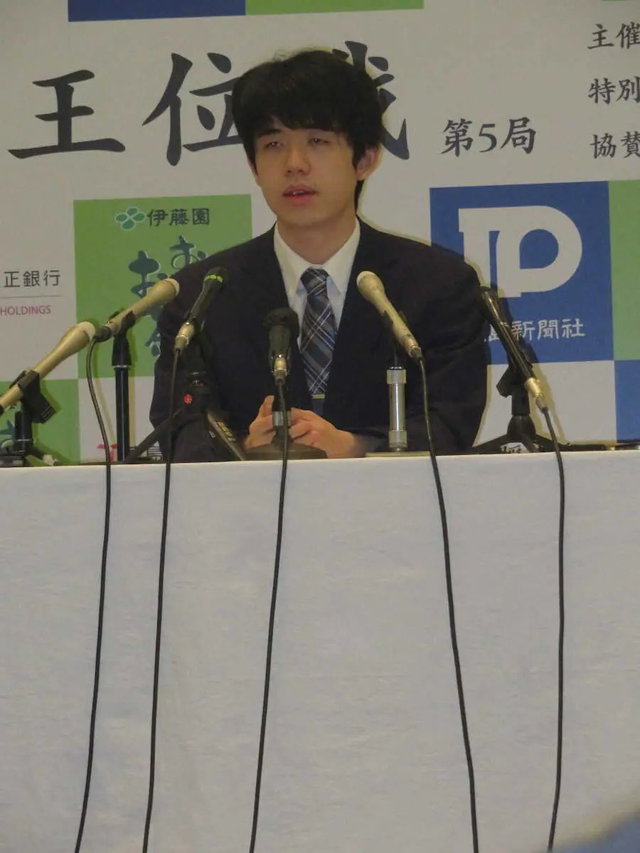 藤井聡太王位(21)=王将、名人、竜王、叡王、棋王、棋聖含む7冠=が挑戦者の佐々木大地七段(28)を4勝1敗で退けた第64期王位戦7番勝負第5局から一夜明けた24日、徳島市内で会見した。22、23日に同市「渭水苑」で指された第5局は先手藤井が95手で勝利。4連覇を達成すると共に、20年度棋聖戦以降出場したタイトル戦で歴代2位タイ、17期連続獲得を樹立した。31日からは史上初の全8冠独占がかかる、永瀬拓矢王座(30)との王座戦5番勝負に臨む。