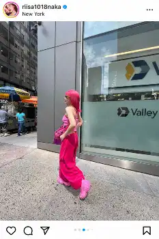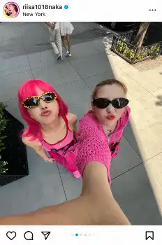 仲は「pink pink NewYork」と、全身ピンクのド派手コーデの写真を披露。また、妹・れいなも全身ピンクコーデの姉妹ショットも投稿した。