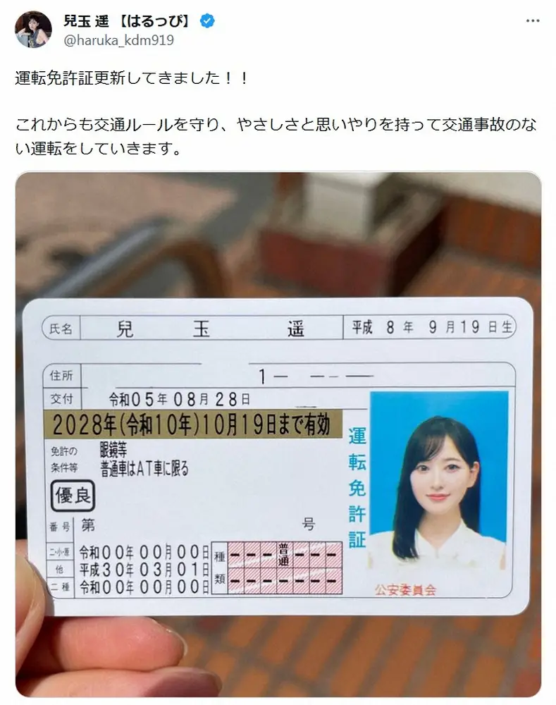 女優の兒玉遥 Photo by スポニチ 兒玉遥 「更新してきました!!」新運転免許証に「写真映え神クラス!」… ギャラリーで見る この記事のフォト 2023年08月28日の画像一覧 もっと見る 2023年08月28日の画像をもっと見る