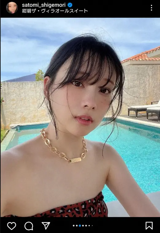 タレントの重盛さと美(34)が28日までに自身のインスタグラムを更新。プールサイドショットを公開した。
