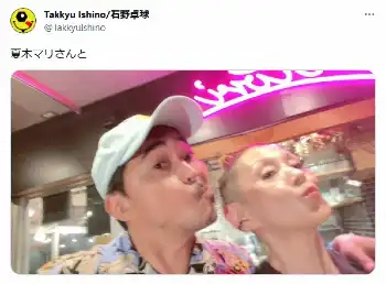 「夏木マリさんと」とコメントした石野は、夏木と仲睦まじい様子の2ショット写真を掲載。夏木も自身のSNSで「今夜は、卓球さんと(乾杯の絵文字)」とコメントし、これに対して石野が「このあと殴り合いました」と“返信”していた。