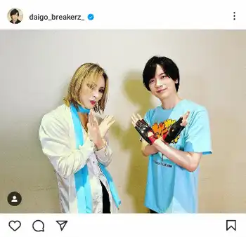 続けて、久しぶりに再会したというYOSHIKIとの2ショットを掲載し、「DAIGOが走るのかと思ったよ!とおっしゃっていたので、僕もう昔走ってますとお答えしました笑」というやり取りも。また、「来年ブーツで走ろうかなーと言ってたので、全力で止めさせていただきました笑」「お会いできてうれしかったです」と報告した。