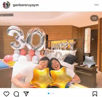 よしこは「今日はまーちゃんの30歳の誕生日」と書き出し、“30”のバルーンが飾りつけられた部屋で2人が肩を並べ笑顔のショットを公開。