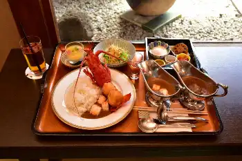 藤井聡太王将の昼食、陣屋カレー(ビーフ&伊勢エビシーフード)、烏龍茶(日本将棋連盟提供) Photo by 提供写真 藤井王将 8冠挑戦の第1局は若干有利で夕休憩へ 飛車角が永瀬陣を直射 永… ギャラリーで見る この記事のフォト 2023年08月31日の画像一覧 もっと見る 2023年08月31日の画像をもっと見る