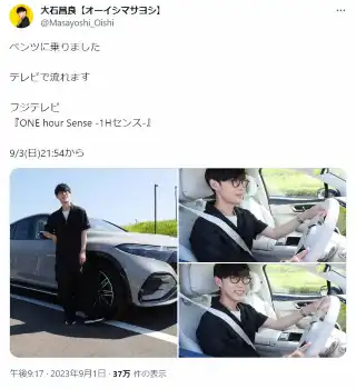 「ベンツに乗りました テレビで流れます」と告知。運転する姿などを公開し、「フジテレビ『ONE hour Sense -1Hセンス-』9/3(日)21:54から」とアピールした。