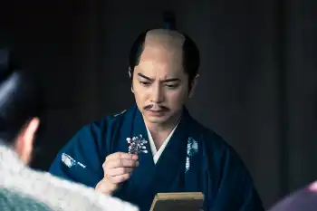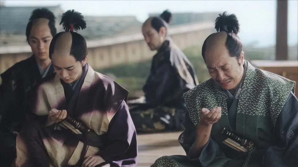 大河ドラマ「どうする家康」第34話。石川数正(松重豊)出奔の“真意”を知り(手前左から)井伊直政(板垣李光人)鳥居元忠(彦右衛門)(音尾琢真)は涙(C)NHK