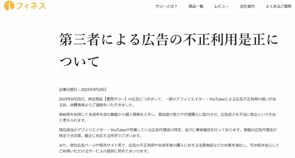ファミリーず【公式】X(@Kinfamirizu)から 「サジー」販売会社、ユーチューバーによる「広告の不正利用」に声明 コ… ギャラリーで見る この記事のフォト 2023年09月05日の画像一覧 もっと見る 2023年09月05日の画像をもっと見る