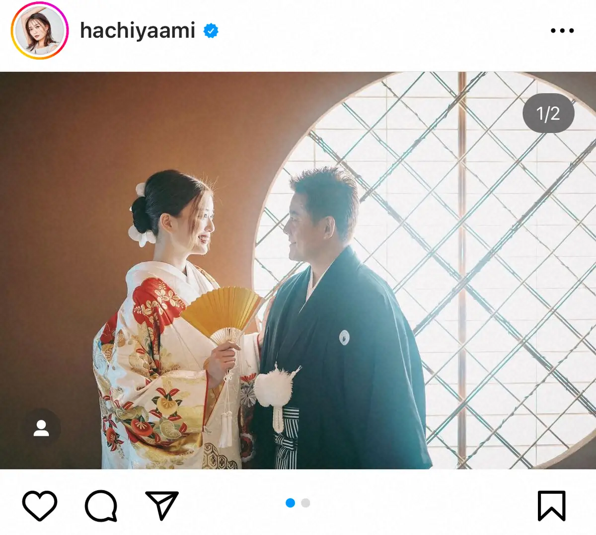 蜂谷は「結婚1周年 9月5日」とつづり、和装の夫婦写真をアップ。1年間の結婚生活を経て「今までで1番仲良しな1年間だった 喧嘩一回もしなかったんじゃないかな?笑 ※小競り合いは多々あり」と振り返った。