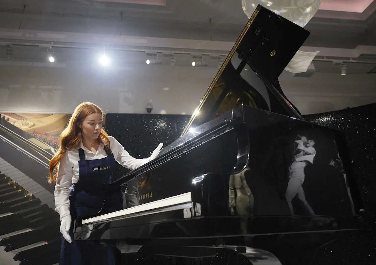 フレディ・マーキュリーが「ボヘミアン・ラプソディ」などの作曲に使ったグランドピアノ(Yui Mok/PA提供・AP)